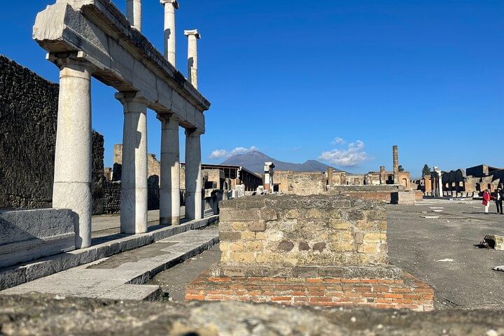 Enjoy Pompeii from Naples where you will find out what life was like before the catastrophic eruption of Vesuvius in 79 AD Follow your archaeological guide in the western part of the city and observe important buildings and structures such as the Basilica, the Forum, the thermal baths, the bakery, some residential houses and more.