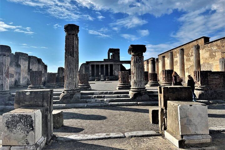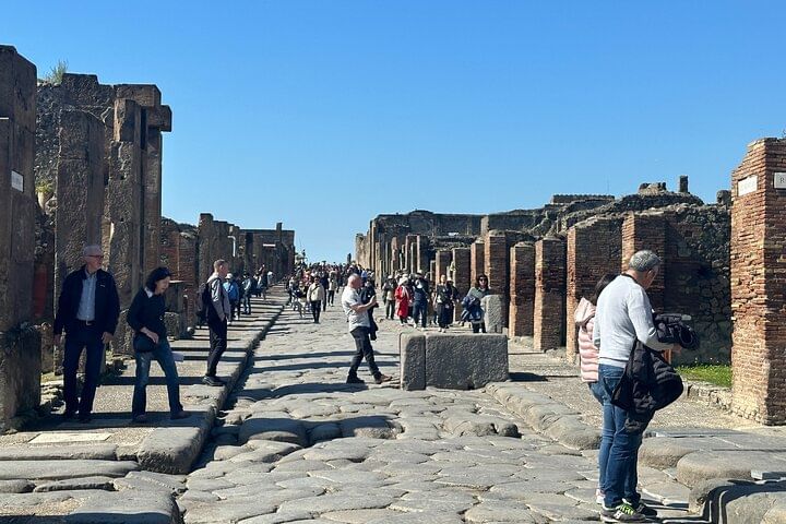 During your private guided tour of Pompeii, you can expect to witness the remarkably preserved remains of temples, villas, theaters, and baths, providing insights into daily life in this ancient Roman city. Your guide will point out intricate mosaics, frescoes, and artifacts that offer glimpses into the art, architecture, and customs of the time. Additionally, you'll learn about the tragic eruption of Mount Vesuvius in 79 AD that buried Pompeii under a thick layer of ash and pumice, freezing it in time until its rediscovery centuries later.