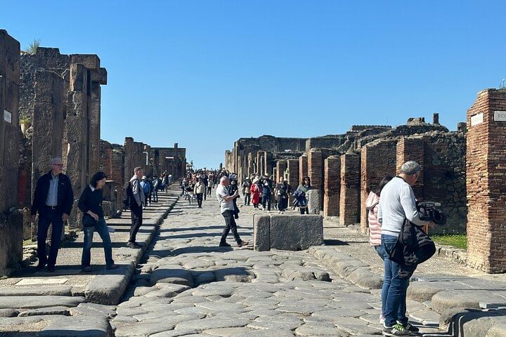 Step back in time with our Pompeii Guided Tour from Positano Small Group excursion. Join us on a journey to explore the ancient ruins of Pompeii, a city frozen in time by the eruption of Mount Vesuvius in 79 AD. Our expert guides will lead you through the well-preserved streets, temples, and homes, immerse yourself in history as you walk along the ancient cobblestone streets, marvel at the intricate frescoes that still adorn the walls of the villas, and learn about the tragic fate of the city's inhabitants. This small group tour ensures an intimate and personalized experience, allowing you to ask questions, interact with your guide, and truly connect with the ancient world of Pompeii. Soak in the atmosphere of this archaeological marvel and gain a deeper understanding of one of the most significant sites in Italy's history.