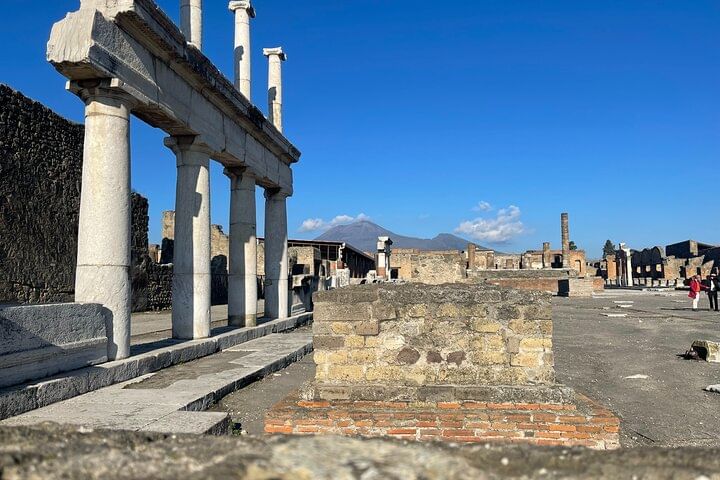 Departure from your accommodation embark on a journey through time as you explore the ancient ruins of Pompeii. With an expert guide leading the way, you'll uncover the fascinating history and culture of this once-thriving Roman city, preserved in time by the catastrophic eruption of Mount Vesuvius in 79 AD. Marvel at the remarkably well-preserved frescoes, intricate mosaics, and the haunting casts of the city's inhabitants. This small group tour ensures a personalized experience, allowing you to immerse in the stories and secrets of Pompeii. Whether you're a history enthusiast or simply seeking beauty, this tour offers an enriching and memorable experience.